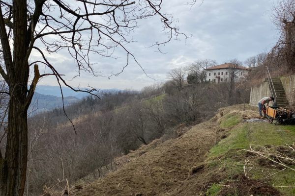 Onze lieve buur Francesco kwam met zijn graafmachine de berg afgereden en het startschot werd gegeven. We trokken alle 4 onze laarzen aan en onze slechte jeansbroek en trokken mee het veld in.